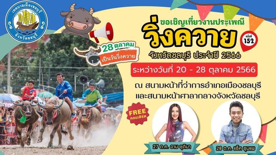 มาแล้ว ประเพณีวิ่งควาย ปี 2566 ครั้งที่ 152 วันที่ 20-28 ตุลาคม นี้ จังหวัดขอเชิญเที่ยวงานประเพณีวิ่งควายจังหวัดชลบุรี