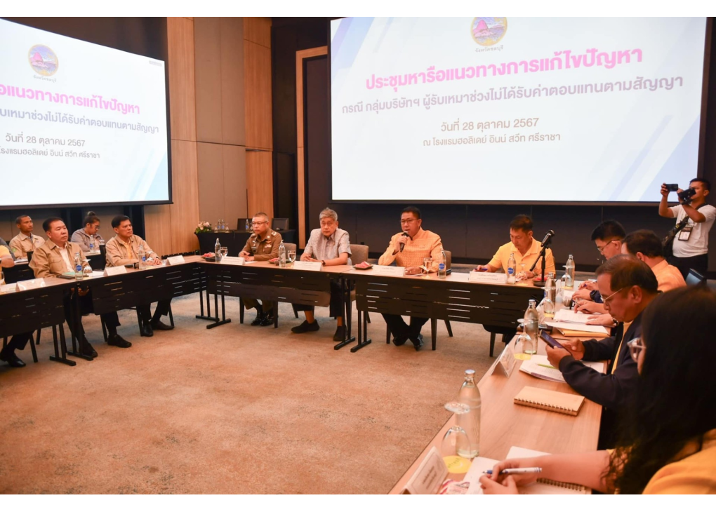 วันจันทร์ที่ 28 ตุลาคม 2567 เวลา 10.00 น. นายธวัชชัย ศรีทอง ผู้ว่าราชการจังหวัดชลบุรี เป็นประธานประชุมหารือแนวทางแก้ไขปัญหาความเดือดร้อน กรณี กลุ่มบริษัทผู้รับเหมาช่วงขอความช่วยเหลือจากการไม่ได้รับค่าตอบแทนตามสัญญาจ้างก่อสร้างโครงการพลังงานสะอาด (Clean Fuel Project : CFP) ของบริษัท ไทยออยล์ จำกัด (มหาชน) โดยมี นายชัยพร แพภิรมย์รัตน์ รองผู้ว่าราชการจังหวัดชลบุรี นายบัณฑิต กองทิพย์ อัยการคุ้มครองสิทธิและช่วยเหลือทางกฎหมายและบังคับคดีจังหวัดชลบุรี พล.ต.ต.ธวัชเกียรติ จินดาควรสนอง ผู้บังคับการตำรวจภูธรจังหวัดชลบุรี นายประสิทธิ์ ปาตังคะโร สวัสดิการและคุ้มครองแรงงานจังหวัดชลบุรี นายนพรัตน์ ศรีพรหม นายอำเภอศรีราชา หัวหน้าส่วนราชการและหน่วยงานที่เกี่ยวข้อง และตัวแทนนายจ้างและลูกจ้างผู้ได้รับผลกระทบ ร่วมประชุมฯ ณ ห้องประชุม Ballroom ชั้น 6 โรงแรมฮอลิเดย์ อินน์ สวีท ศรีราชา แหลมฉบัง อำเภอศรีราชา จังหวัดชลบุรี