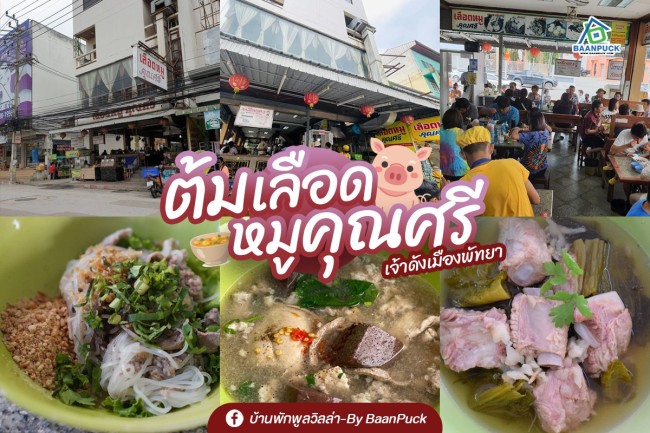 ร้านต้มเลือดหมูคุณศรีตั้งอยู่ในพัทยากลางซอย 7 ถ้าขับรถเข้ามาทางพัทยากลางให้ขับรถผ่าน 2 ไฟแดง ร้านจะอยู่ฝั่งซ้ายมือ ตรงข้ามกับการไฟฟ้าส่วนภูมิภาค ซึ่งร้านต้มเลือดหมูคุณศรี สาขาพัทยากลาง เป็นร้านต้มเลือดหมูอร่อยเจ้าดังในตำนานและเป็นสาขาต้นตำรับของจังหวัดชลบุรีที่เปิดมานานไม่ต่ำกว่า 20 ปี เรียกได้ว่าเรากินร้านนี้มาตั้งแต่เด็กเลยทีเดียว เพราะทุกครั้งที่เรามาเที่ยวพัทยากับครอบครัว เรามักจะมากินต้มเลือดหมูเป็นอาหารเช้าที่ร้านนี้เสมอ ปัจจุบันร้านต้มเลือดหมูคุณศรีได้เปิดสาขาเพิ่มอีก 3 สาขาคือ สาขาพัทยาเหนือ ริมถนนสุขุมวิท ติดกับปั๊ม Shell ฝั่งเดียวกับโรงพยาบาลกรุงเทพ-พัทยา เยื้องกับวัดหนองใหญ่, สาขาจอมเทียน ในปั๊มน้ำมัน ปตท. จอมเทียน (สี่แยกชัยพฤกษ์) และสาขา Flynow Outlet พัทยา: ฟู่เฉิง by เลือดหมูคุณศรี โดยบรรยากาศภายในร้านจะมี 2 ชั้นด้วยกัน คือ ชั้นล่างจะเป็นแบบ Open Air ด้านหน้าเป็นพื้นที่ครัวสำหรับทำต้มเลือดหมู ส่วนชั้นบนเป็นห้องแอร์ ไม่แน่ใจว่าปัจจุบันยังเปิดให้ใช้บริการหรือไม่ มีโต๊ะ-ที่นั่งไม่ต่ำกว่า 10 โต๊ะ หากมาในช่วงสาย ๆ กับช่วงเที่ยง ๆ โดยเฉพาะในช่วงวันหยุด อาจต้องยืนรอคิวนานสักนิด เนื่องจากนักท่องเที่ยวมักจะแวะมากินค่อนข้างมาก สำหรับที่จอดรถนั้นสามารถขับเข้าไปจอดบริเวณลานจอดรถทางด้านหลังร้านได้เลยค่ะ