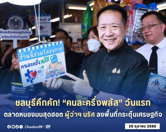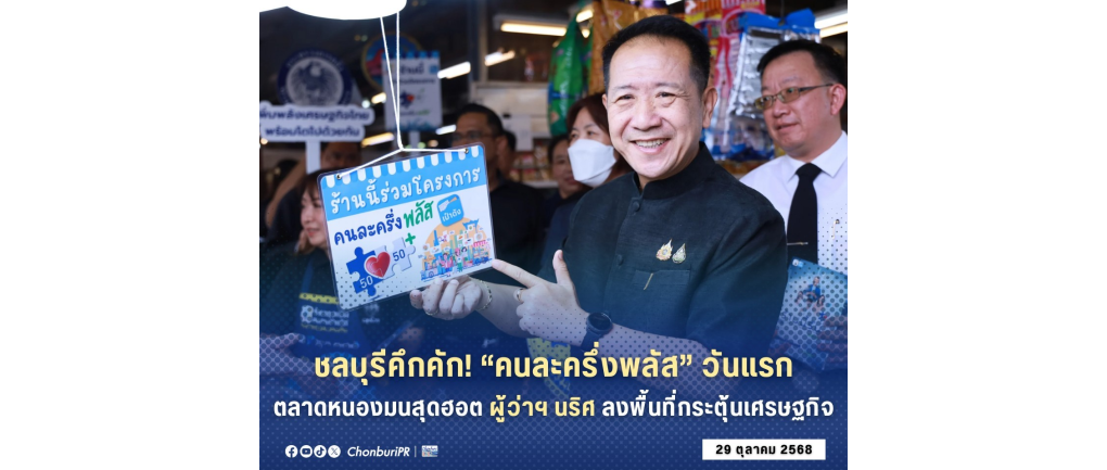 ชลบุรี, 29 ต.ค. 68 บรรยากาศโครงการ “คนละครึ่งพลัส” วันแรกที่จังหวัดชลบุรีเป็นไปอย่างคึกคัก! ประชาชนแห่ใช้สิทธิ์จับจ่ายสินค้าตั้งแต่เช้าตรู่ ทำให้ ตลาดหนองมน บางแสน อำเภอเมืองชลบุรี เต็มไปด้วยสีสัน