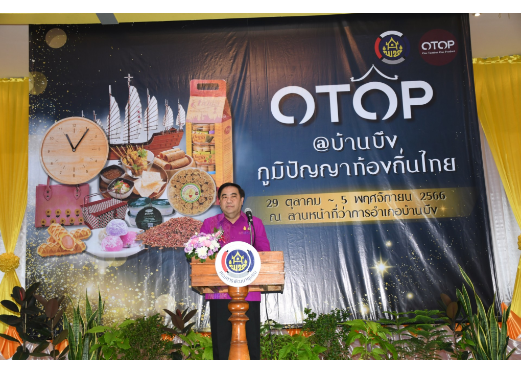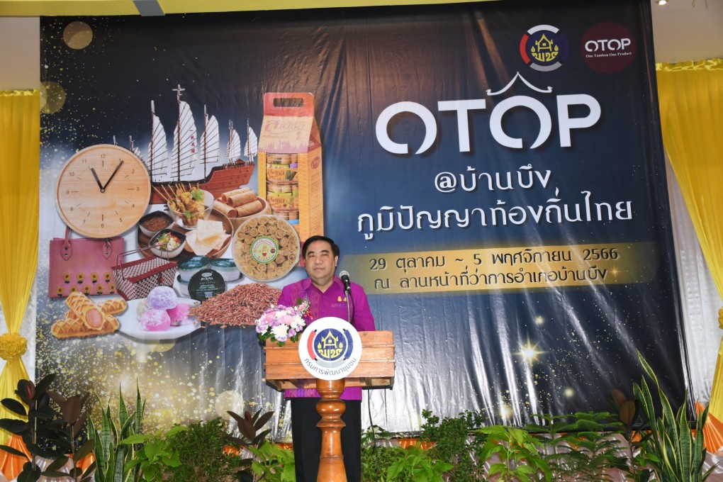 สำนักงานพัฒนาชุมชนอำเภอบ้านบึง ร่วมกับคณะกรรมการเครือข่ายกลุ่มอาชีพ ผู้ผลิต ผู้ประกอบการหนึ่งตำบล หนึ่งผลิตภัณฑ์ และที่ปรึกษาอำเภอบ้านบึง จัดงาน “OTOP@บ้านบึง ภูมิปัญญาท้องถิ่นไทย” ระหว่างวันที่ 29 ตุลาคม 2566 ถึงวันที่ 5 พฤศจิกายน 2566 โดยมีวัตถุประสงค์เพื่อส่งเสริมช่องทางการตลาดและเพิ่มรายได้ให้แก่ ผู้ผลิต ผู้ประกอบการ OTOP และเพื่อเสริมสร้างศักยภาพให้แก่ผู้ผลิต ผู้ประกอบการ OTOP ด้านการแข่งขันทางธุรกิจและฟื้นฟูเศรษฐกิจท้องถิ่นและชุมชน รวมทั้งเพื่อเชื่อมโยงเครือข่ายด้านการตลาดของผู้ผลิต ผู้ประกอบการ OTOP อีกด้วย