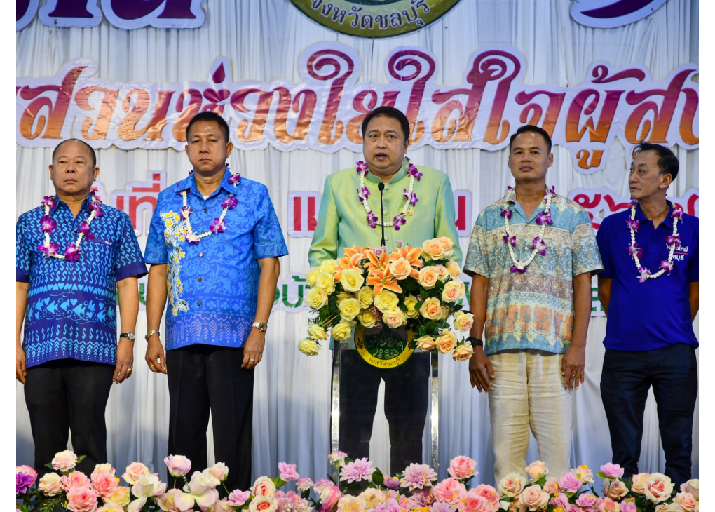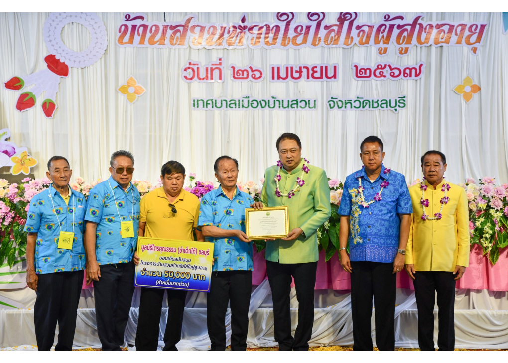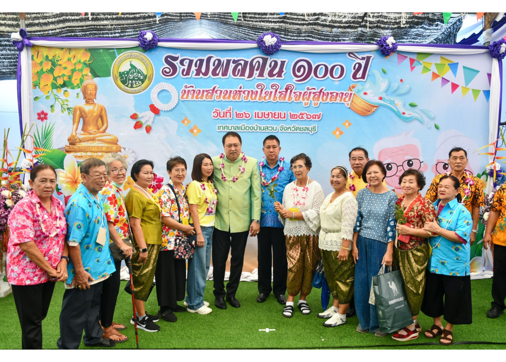 วันศุกร์ที่ 26 เมษายน 2567 ณ ศาลาประชาคมเทศบาลเมืองบ้านสวน อำเภอเมืองชลบุรี จังหวัดชลบุรี นายธวัชชัย ศรีทอง ผู้ว่าราชการจังหวัดชลบุรี ร่วมเป็นเกียรติในพิธีเปิดโครงการบ้านสวนห่วงใยใส่ใจผู้สูงอายุ ประจำปีงบประมาณ พ.ศ.2567 โดยมีนายสุชาติ ชมกลิ่น สมาชิกสภาผู้แทนราษฎร อดีตรัฐมนตรีว่าการกระ ทรวงแรงงาน เป็นประธานในพิธีฯ มี น.ส.สุดินา แก้วดี ท้องถิ่นจังหวัดชลบุรี น.ส.จันจิรา ไทยบัณฑิตย์ พัฒนาสังคมและความมั่นคงของมนุษย์จังหวัดชลบุรี นายเฉลิมพล เนียมสกุล แรงงานจังหวัดชลบุรี หัวหน้าส่วนราชการ นายวิชิต ชิตวิเศษ นายกเทศมนตรีเมืองบ้านสวน และแขกผู้มีเกียรติ ร่วมพิธีฯ