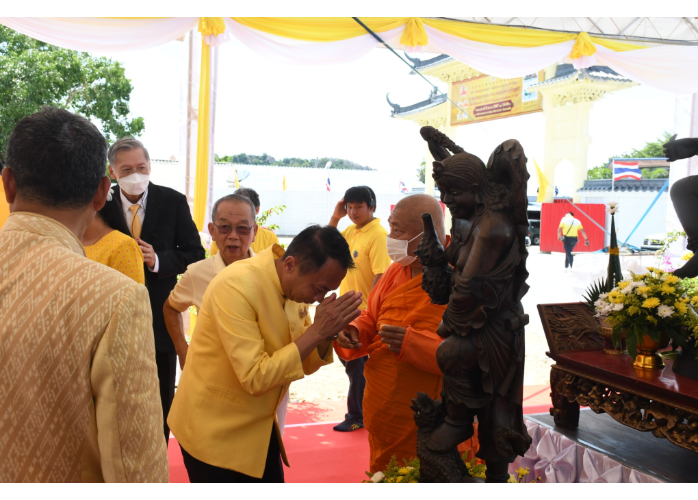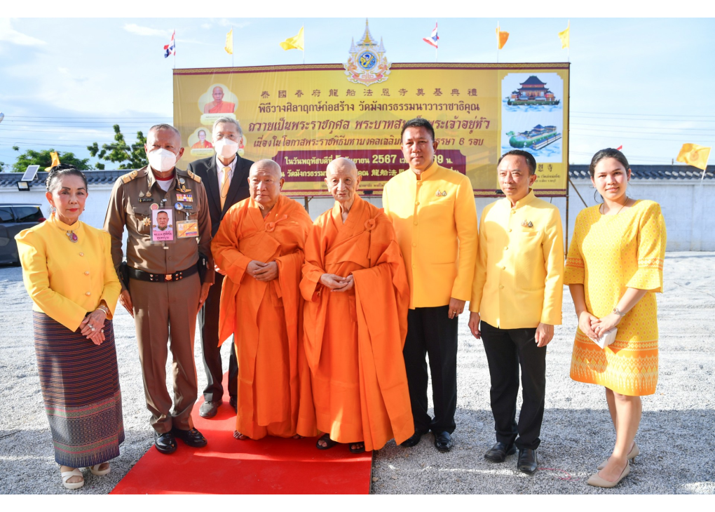 เมื่อเร็วๆนี้ (5 ก.ย.67) ที่วัดมังกรธรรมนาวาราชาธิคุณ 龍船法恩寺 (วัดเล่งเน่ยยี่ 4) ถนนบางแสน-อ่างศิลา ตำบลแสนสุข อำเภอเมืองชลบุรี จังหวัดชลบุรี เจ้าประคุณสมเด็จพระมหาวีรวงศ์ เลขานุการสมเด็จพระสังฆราช กรรมการมหาเถรสมาคม เป็นประธานฝ่ายสงฆ์ไทย พระมหาคณาจารย์จีนธรรมวชิราจารย์ (เย็นอี่) ผู้รักษาการแทนเจ้าคณะใหญ่จีนนิกาย เจ้าอาวาสวัดโพธิ์เย็น ประธานพิธีฝ่ายสงฆ์จีนนิกาย พร้อมด้วย พระคณาจารย์จีนธรรมวชิรานุวัตร (เย็นงี้) เจ้าอาวาสวัดมังกรกมลาวาส ปลัดขวาจีนนิกาย ประธานกรรมการดำเนินการก่อสร้าง นายสุทธิพงษ์ จุลเจริญ ปลัดกระทรวงมหาดไทย เป็นประธานฝ่ายฆราวาส พิธีวางศิลาฤกษ์ก่อสร้าง "วัดมังกรธรรมนาวาราชาธิคุณ" ถวายเป็นพระราชกุศล พระบาทสมเด็จพระเจ้าอยู่หัว เนื่องในโอกาสพระราชพิธีมหามงคลเฉลิมพระชนมพรรษา 6 รอบ 28 กรกฎาคม 2567 โดยมี นายพงศ์รัตน์ ภิรมย์รัตน์ อธิบดีกรมโยธาธิการและผังเมือง นายประสพโชค อยู่สำราญ ที่ปรึกษาปลัดกระทรวงมหาดไทย นายธวัชชัย ศรีทอง ผู้ว่าราชการจังหวัดชลบุรี นางสาวปภัสรา ศรีทอง นายกเหล่ากาชาดจังหวัดชลบุรีและประธานชมรมแม่บ้านมหาดไทยจังหวัดชลบุรี หัวหน้าส่วนราชการ ภาคีเครือข่าย และพุทธศาสนิกชน ร่วมในพิธีเป็นจำนวนมาก