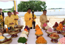โดยในเวลา 14.09 น. นายสุทธิพงษ์ จุลเจริญ ปลัดกระทรวงมหาดไทย เป็นประธานฝ่ายฆราวาส พระคณาจารย์จีนธรรมวชิรานุวัตร (เย็นงี้) เจ้าอาวาสวัดมังกรกมลาวาส ปลัดขวาจีนนิกาย เป็นประธานฝ่ายสงฆ์ ในพิธีบวงสรวงเทพยดาฟ้าดินสิ่งศักดิ์สิทธิ์ทั้งปวง บริเวณราชวัตรฉัตรธง เพื่อเป็นสิริมงคลป่าวประกาศให้เทวดาทุกชั้นฟ้าวิมาน และสิ่งศักดิ์สิทธิ์ที่ปกปักสถานพื้นที่บริเวณโรงเจธรรมนาวาดั้งเดิม เพื่อก่อสร้างเป็นวัดมังกรธรรมนาวาราชาธิคุณ ด้วยความเป็นสวัสดิมงคล