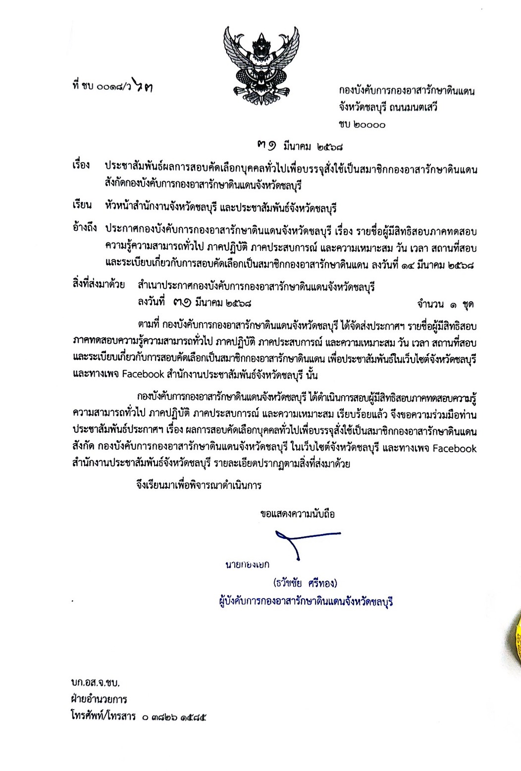 ประกาศสำนักงานสหกรณ์จังหวัดชลบุรี เรื่องรับสมัครบุคคลธรรมดา เพื่อคัดเลือกเป็นพนักงานจ้างเหมาบริการ ตำแหน่งนักวิชาการสหกรณ์ ประจำปีงบประมาณ พ.ศ. 2569 (ดู :293)