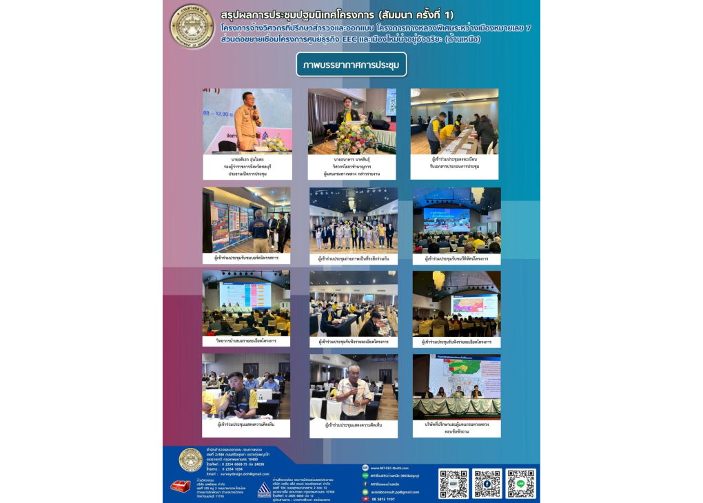 ประกาศสรุปผลการประชุมปฐมนิเทศโครงการ (สัมมนา ครั้งที่ 1) โครงการจ้างวิศวกรที่ปรึกษาสำรวจและออกแบบ โครงการทางหลวงพิเศษระหว่างเมืองหมายเลข 7 ส่วนต่อขยายเชื่อมโครงการศูนย์ธุรกิจ EEC และเมืองใหม่น่าอยู่อัจฉริยะ (ด้านเหนือ)