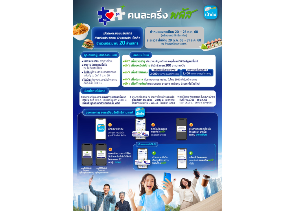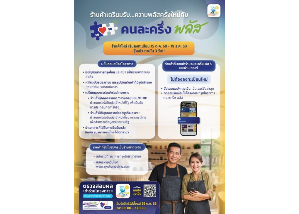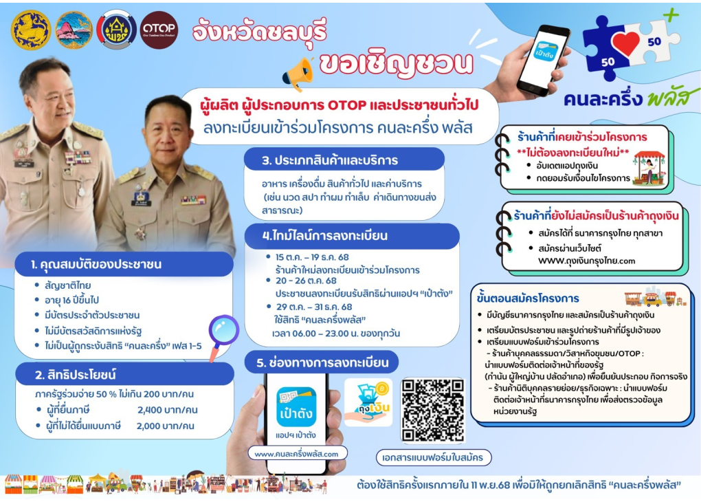 ขอประชาสัมพันธ์และเชิญชวนผู้ที่สนใจโครงการ "คนละครึ่ง พลัส"