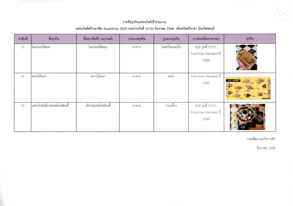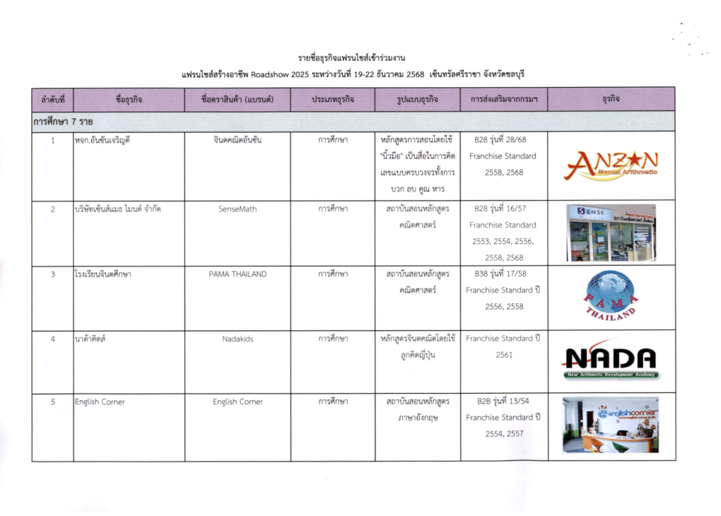 สำนักงานพาณิชย์จังหวัดชลบุรี ขอประชาสัมพันธ์การจัดงานแฟรนไซส์สร้างอาชีพ Roadshow 2025