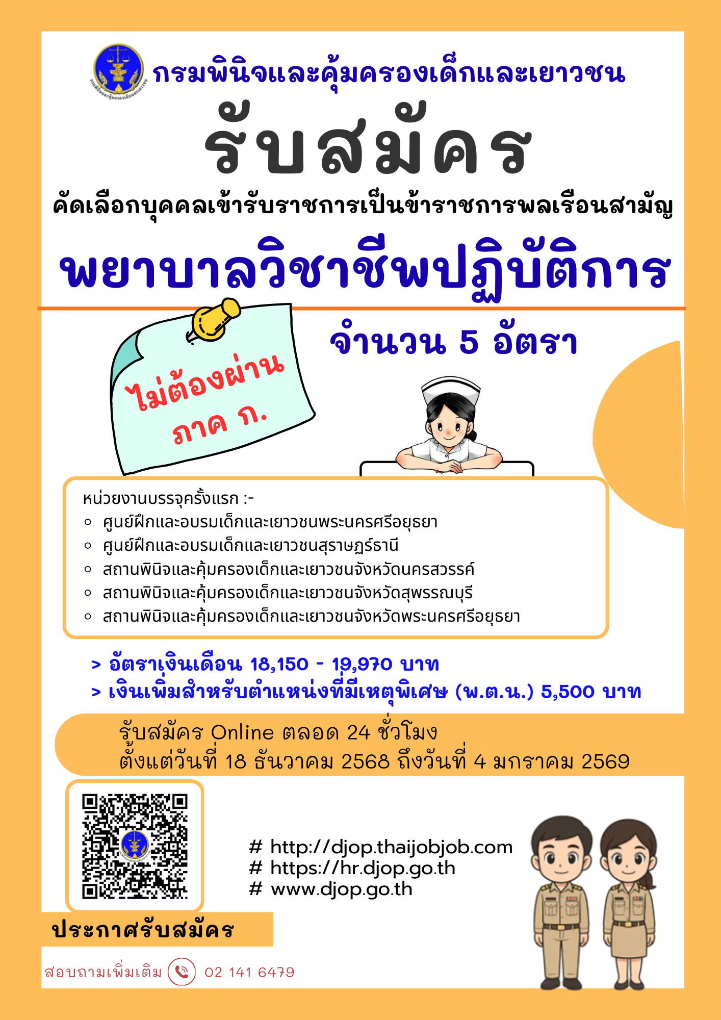 กรมพินิจและคุ้มครองเด็กและเยาวชน ขอความอนุเคราะห์ประชาสัมพันธ์การรับสมัครคัดเลือกเพื่อบรรจุและแต่งตั้งบุคคลเข้ารับราชการพลเรือนสามัญ