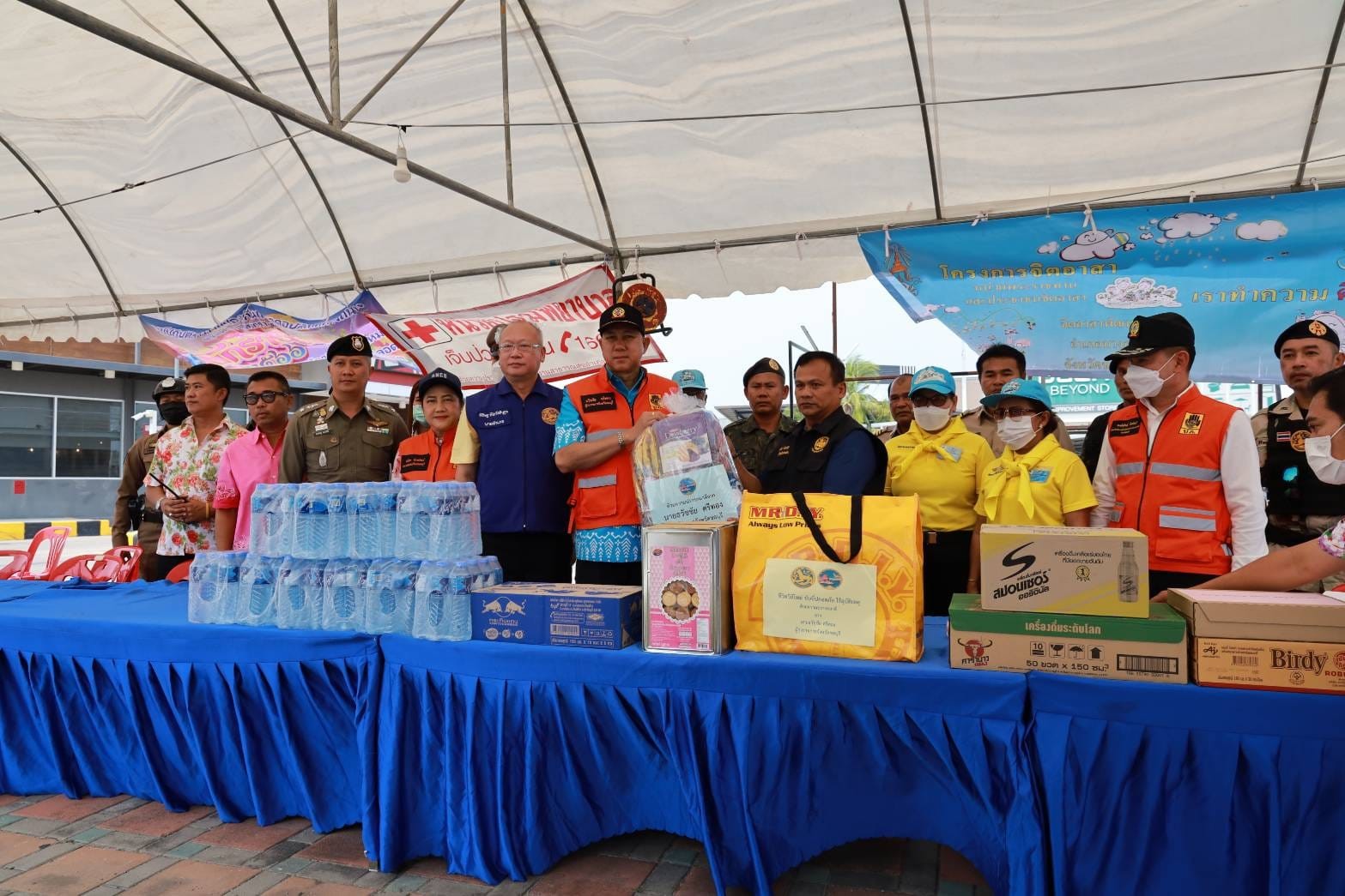 ผู้ว่าราชการจังหวัดชลบุรี ลงพื้นที่ตรวจเยี่ยม ให้กำลังใจจุดบริการประชาชนทางถนน และจุดบริการทางน้ำ
