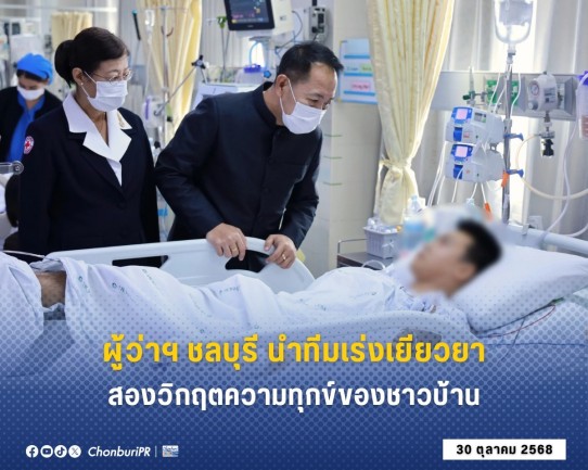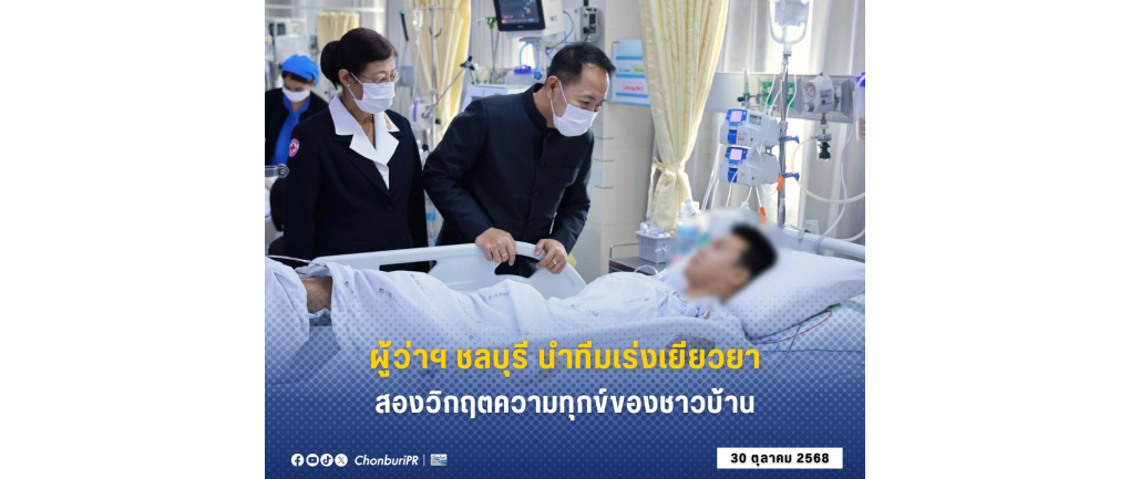 30 ต.ค. 68 ณ โรงพยาบาลชลบุรี นายนริศ นิรามัยวงศ์ ผู้ว่าราชการจังหวัดชลบุรี พร้อมด้วย นางสุพิณญา นิรามัยวงศ์ นายกเหล่ากาชาดจังหวัดชลบุรี นางสาวขวัญเรือน ศรีจันทร์ ปลัดจังหวัดชลบุรี พร้อมผู้บริหารโรงพยาบาลชลบุรี ได้เร่งลงพื้นที่ติดตามและให้กำลังใจผู้ประสบเหตุการณ์สะเทือนใจในพื้นที่ถึงสองกรณีติดต่อกัน สะท้อนความใส่ใจต่อทุกข์สุขของประชาชนอย่างใกล้ชิด