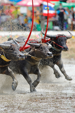 ศาลากลางจังหวัดมีการแข่งขันวิ่งควาย ประกวดสุขภาพควาย ประกวดการตกแต่งควา